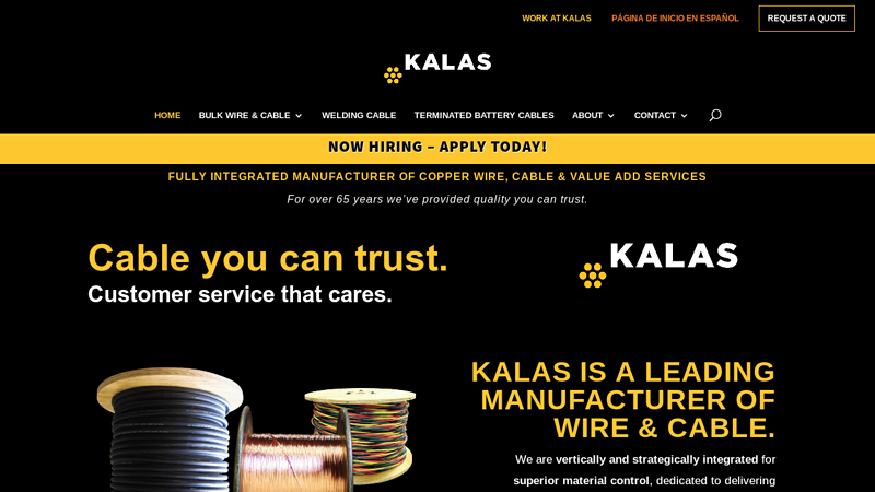 Key Highlights: Kalas is the leader in manufacturing quality copper wire & cable since 1958. Choose Kalas for bulk wire & cable, welding cable, & terminated battery cables….