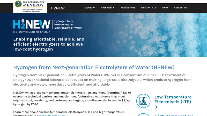 Key Highlights: Enabling affordable, reliable, and efficient electrolyzers to achieve low‑cost hydrogen · Hydrogen from Next-generation Electrolyzers of Water (H2NEW)….