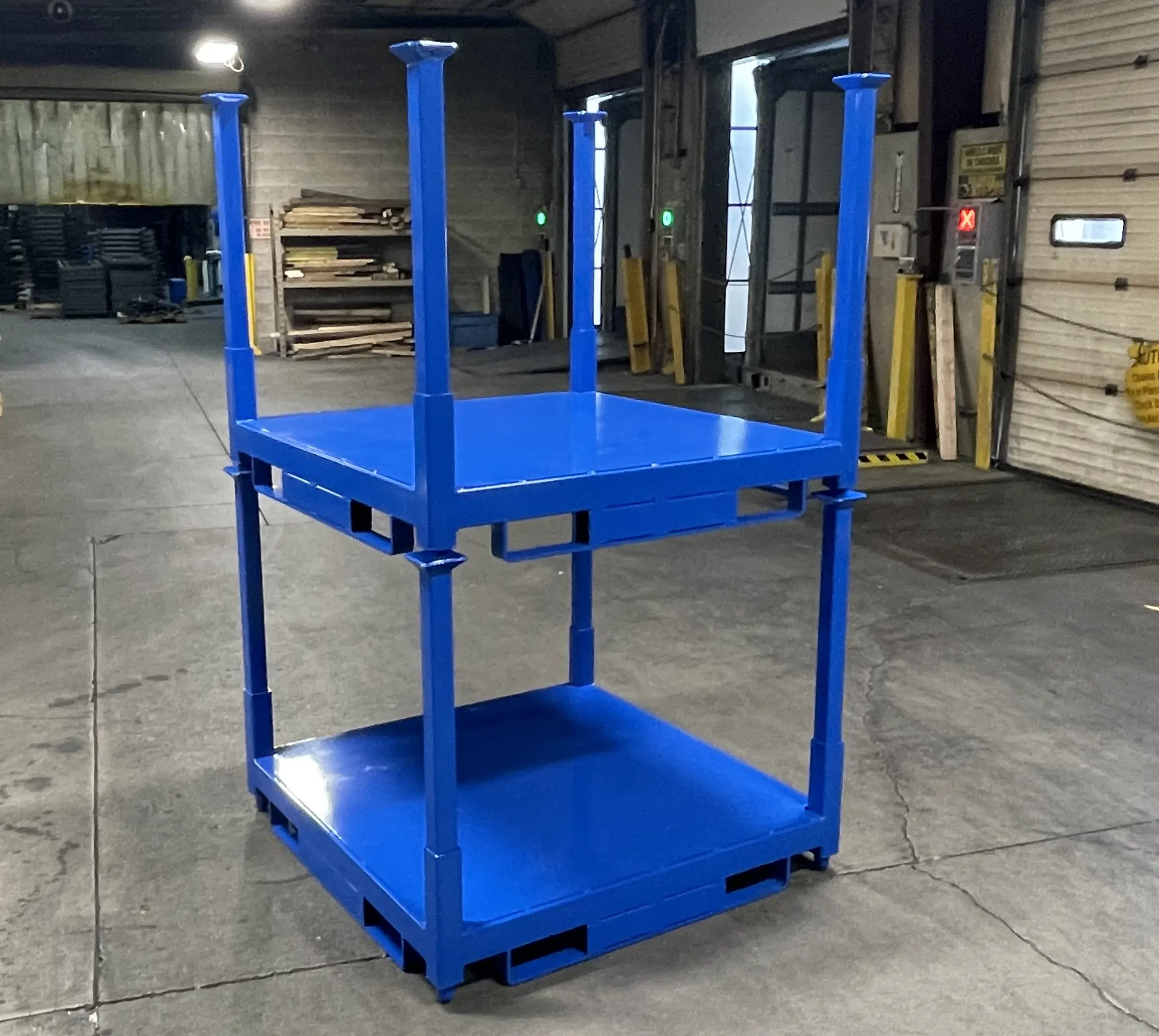 Poor manufacturing control results in stack racks that don’t align or nest properly when stacked, causing instability, safety hazards, and inefficient storage. Slight variances in frame squareness or caster placement can compound when multiple units are stacked.